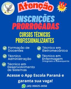 A direção do colégio Eron reforça que esta é uma oportunidade importante para os jovens que desejam sair do ensino médio já com uma formação técnica e melhores condições de inserção no mercado de trabalho.