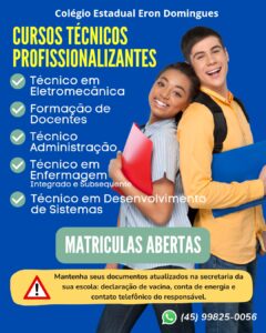 A direção do colégio Eron reforça que esta é uma oportunidade importante para os jovens que desejam sair do ensino médio já com uma formação técnica e melhores condições de inserção no mercado de trabalho.