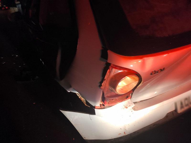 Nas proximidades do acesso ao Recanto das Águas, um pedestre estava no meio da pista arrumando o chinelo que calçava. Para evitar atropelá-lo, a motorista freou bruscamente, momento em que seu carro foi atingido na traseira pelo Gol.