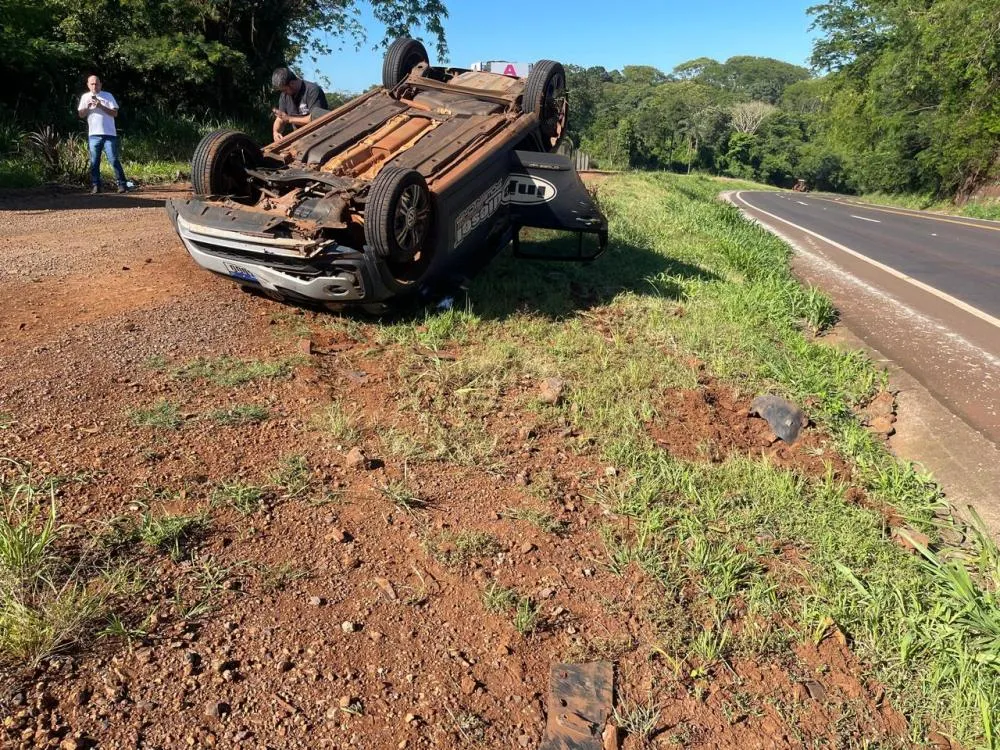 Capotamento de veiculo foi registrado na manhã desta quarta-feira (19) na PRC-467,  na curva da Coresul, no trecho entre a sede de Mal. Rondon e Vila Curvado.