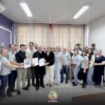 O prefeito Adriano Backes, o vice-prefeito Vanderlei Sauer e a secretária de Assistência Social e primeira-dama, Andria Backes, receberam na prefeitura os representantes das instituições beneficiadas com a feijoada beneficente. Também participaram do encontro secretários municipais, além de demais servidores e representantes da Acimacar e da PROEM.