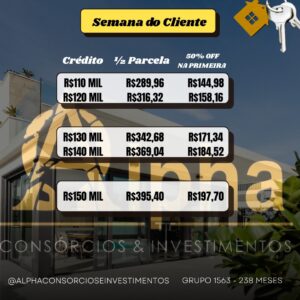 ➡️ Desconto de 30% a 50% na primeira parcela do consórcio de veículos e imóveis.