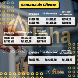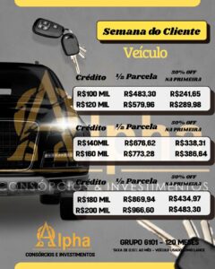 ➡️ Desconto de 30% a 50% na primeira parcela do consórcio de veículos e imóveis.